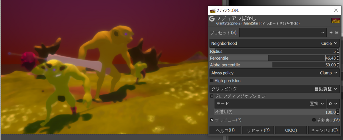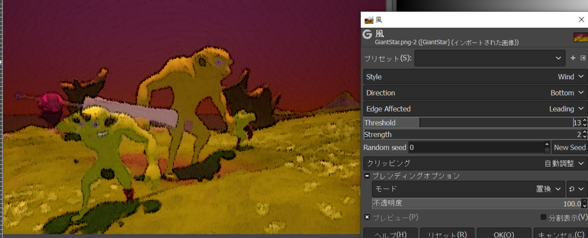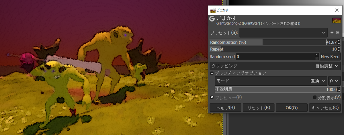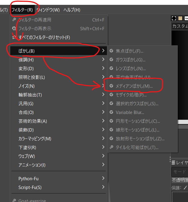 2023-03-24 GIMP 画像を絵みたいにする GIMP やあ Gimpで画像を絵みたいにするよ やる 適当な画像を用意します Gimpを開きます フィルター→ぼかし→メディアンぼかし いい感じにぼやけます フィルター→芸術的効果→漫画 絵っぽくなってきた フィルター→ノイズ→ごまかす 鉛筆で書いたみたいになった これだけでもいいけど フィルター→変形→風 ちょっとだけシュッってする できた!